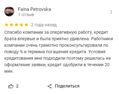 Станом на зараз компанія надає можливість отримати кредит онлайн на строк до 6 місяців та суму до 150 000 грн.